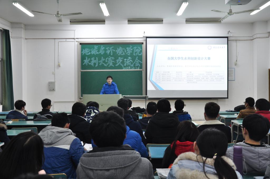 1月13日晚,汤姆影院 在北实401教室举办水利创新设计大赛交流会。第四届全国大学生水利创新设计大赛一等奖获得者舒生茂向2014、2015级水文与水资源专业全体同学传授了参赛经验。