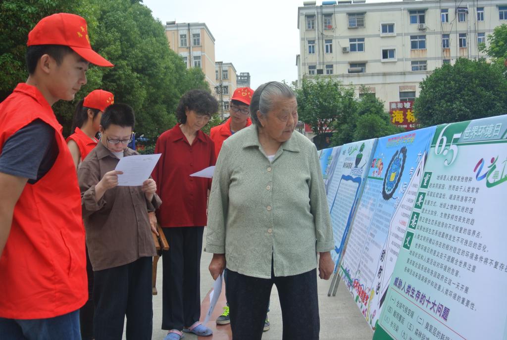 为纪念第44个“6•5世界环境日”,汤姆影院 大学生志愿者以“践行绿色生活”为主题在社区、校园等场所开展系列环保公益宣传活动。