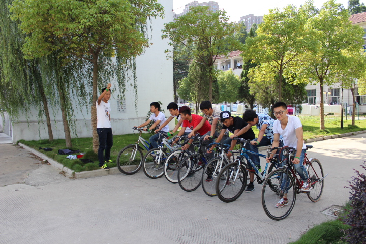 6月4日,志愿者们在北校区22号公寓楼前举办绿色骑行比赛,向同学们宣传绿色、低碳出行环保理念。志愿者邓凯说:“我们希望通过骑行活动,在校园里倡导一种新的生活方式:离开网络,抛开烦恼,低碳出行,释放压力,跟着大自然一起做有氧运动。”