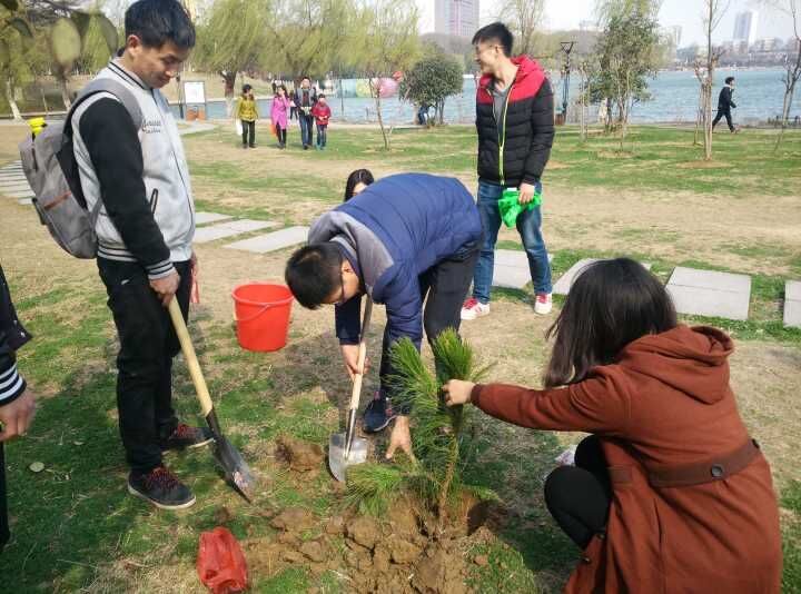 在公园管理人员介绍了植树基本要领和安全注意事项后,志愿者们分成四人一组,在指定地点开始了植树劳动,大家将树苗放入坑中扶正,再培上栽植土壤,铲土堆起树池围堰,干得认真投入、汗湿脸颊,现场一片忙碌的劳动景象。栽植完毕后,志愿者们集中进行了浇水。参加植树活动的志愿者毛应顺同学说:“植树不仅可以绿化环境,还可以美化心灵,提高文明素养,义务植树让我们感受到了劳动的快乐和意义,也增强了我们的环保意识和爱绿、护绿的责任感,传递了社会正能量。”