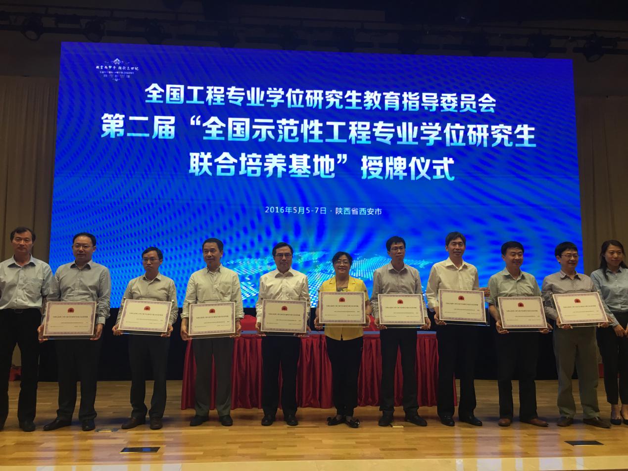 会上,隆重举行了“第二届全国示范性工程专业学位研究生联合培养基地”授牌仪式,全国共有37所高校共建的实践基地获得此项荣誉称号,我校“汤姆影院 -福建省煤田地质局研究生联合培养示范基地”获得授牌。