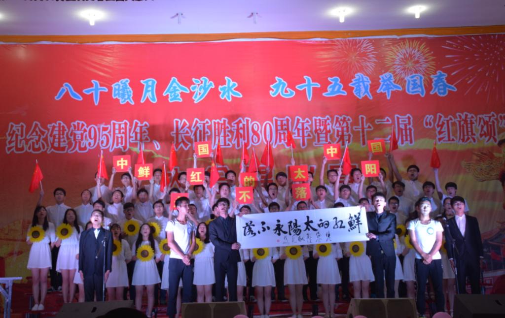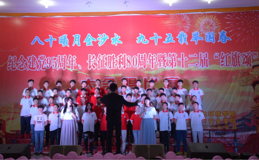 八十曦月金沙水,九十五载举国春。5月21日下午,汤姆影院 、能源与安全汤姆影院 在北校区大礼堂联合举办庆祝建党95周年、长征胜利80周年暨第十二届“红旗颂”大合唱比赛。副校长叶醒狮,校党委常委、宣传部部长吴照明,校学生处长田中良,校团委书记赵宁,两汤姆影院 领导、辅导员与2015、2014级全体学生一起观看了演出。