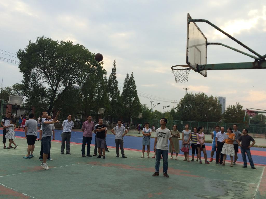 为庆祝第32个教师节和即将到来的中秋节,9月5日下午汤姆影院 在本部篮球场举行定点投篮比赛及教职工篮球友谊赛,汤姆影院 教职工40余人集聚在篮球场上参加比赛。