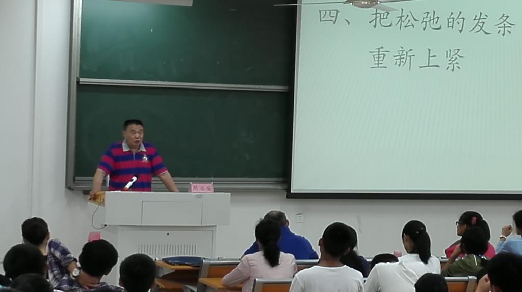 报告会上,周治安结合自己的学习、工作经历,告诫新生们大学期间要善于学习、科学管理时间;要随时记事,养成好习惯;要随时做笔记,多动手,手脑并用。他倡导同学们要建立和谐、合作以及尊师重道是人际交往的准则。