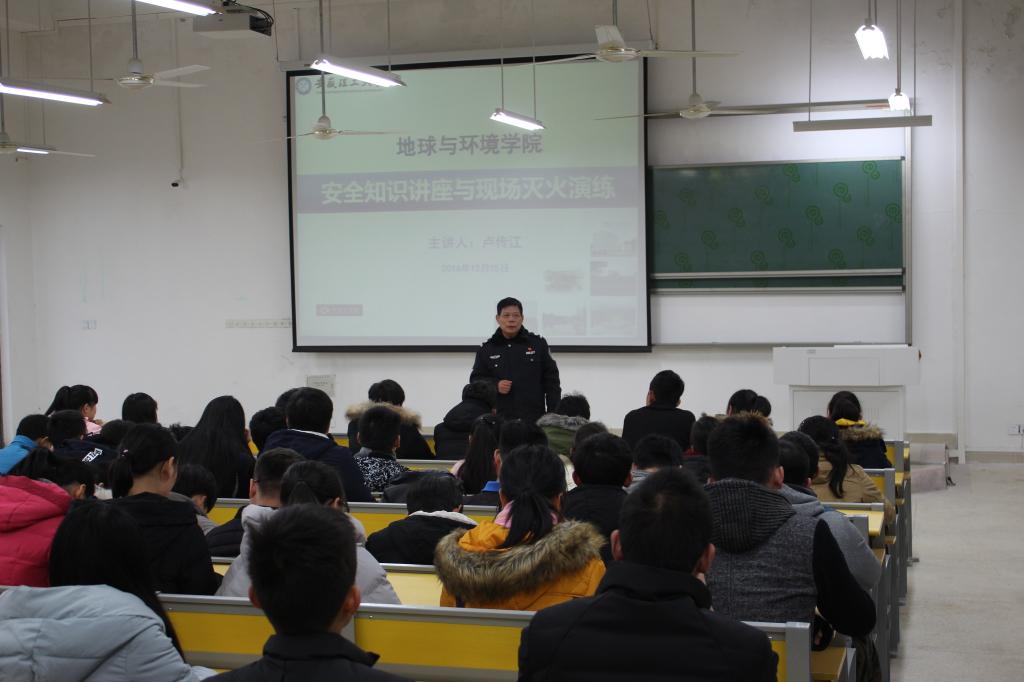 安全第一,预防为主。为增强学生的安全意识和防范能力,提高消防技能,2016年12月15日下午,汤姆影院 特邀校保卫处消防科卢传江老师在新校区天宫楼103教室为2016级新生举办了安全知识讲座,院长胡友彪主持讲座。