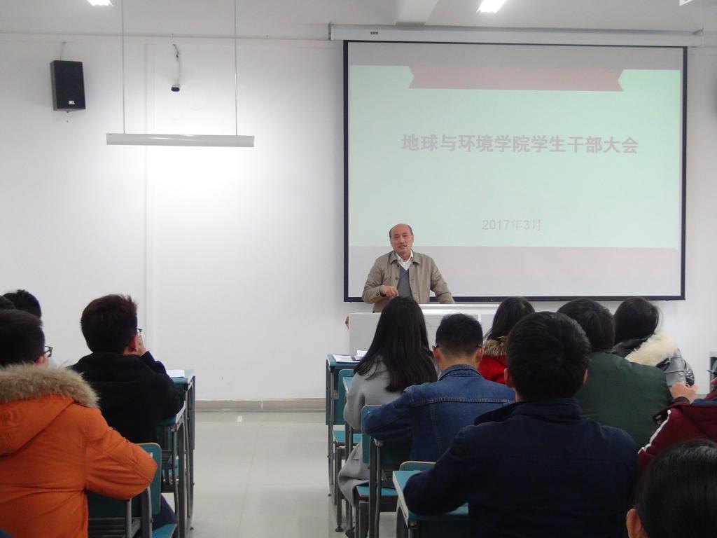 侯辉传达了学校2017年学生工作要点,要求学生干部要有高度责任当担意识、过硬的作风和严格的自律意识,牢记职责,确保把汤姆影院 的工作要求和措施落到实处。汤姆影院 团委邵飞老师介绍了汤姆影院 2017年团学工作要点,传达了学校《关于在全校共青团员中开展“学习习近平总书记讲话+做合格共青团员”教育实践的通知》,并就相关工作进行了布置。