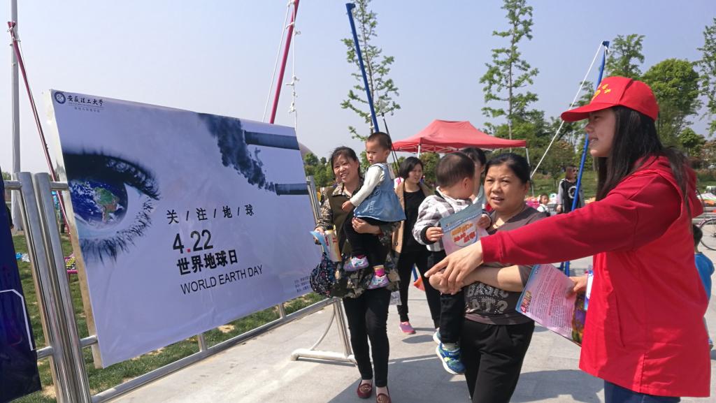 上午9点,40多名大学生科普志愿者在公园湖边广场通过主题征文和图片展示、专题展板讲解、签名、发放宣传资料、有奖问答、播放音像资料等多种方式向市民讲述地球故事,普及地球资源、物种危机、低碳生活、水资源保护、地质灾害防治等方面的知识,呼吁市民珍惜地球资源,积极参与节约集约利用资源,从身边的小事做起,践行绿色、低碳生活。活动现场,志愿者们组织小朋友们开展了彩绘地球家园活动,数十名小朋友一齐动手,在彩绘墙上共同彩绘出心目中的地球。同时,志愿者们还组织了地球科普知识有奖问答和废旧物品置换绿色植物活动,提醒市民环保人人可为。