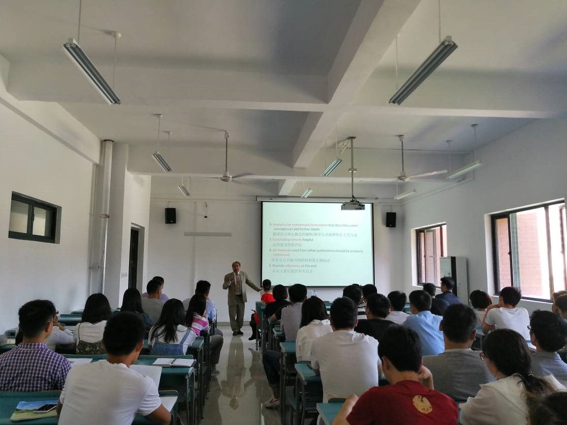 Ravi Jain教授分别作了“Research, Scholarly Activities, Publications and International Collaboration (科学研究、学术活动、出版物和国际合作)”和“Environmental Implications of Mining(矿山开采的环境影响)”的学术报告。他围绕学术论文和期刊论文撰写、国家和国际基金项目申请,以及美国博士生、访问学者和博士后申请等问题同与会师生进行了广泛深入交流。针对我校地矿学科专业特点,Ravi Jain教授结合美国及相关国家开采条件,重点对煤矿开采所产生的环境影响进行了阐述,根据自己多年的环境工程研究成果,从空气质量、水环境质量、土地、生态和经济等诸多方面进一步分析了采矿所带来的积极和消极影响。并就大家普遍关心的环境问题进行了交流和讨论。