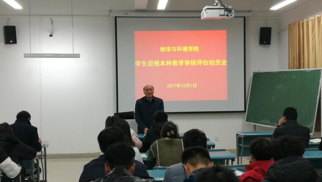 12月1日晚,汤姆影院 在静远楼202教室召开学生迎接本科教学工作审核评估动员会,院党委书记盛鹏飞出席会议并讲话,各年级辅导员、主要班级干部80多人参加会议。院党委副书记侯辉主持会议。