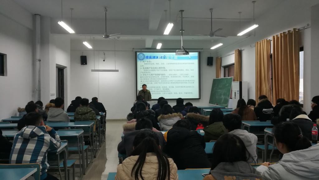 12月28日下午,汤姆影院 邀请校保卫处副处长刘训强在静远楼202教室举办校园安全教育讲座。汤姆影院 全体实验员,辅导员与学生骨干80余人聆听了讲座。
