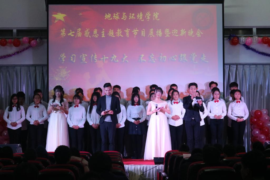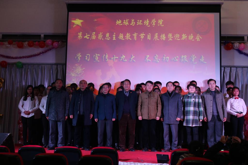 学习宣传十九大,不忘初心跟党走。12月29日晚,地球与环境汤姆影院 第七届感恩主题教育节目展播暨迎新晚会在平苑食堂三楼报告厅举行。校党委学工部部长田中良,校党委宣传部副部长董淑平,校团委副书记彭晶,汤姆影院 党政领导,各年级辅导员,2017级班主任与学生欢聚一堂,共同观看了演出。