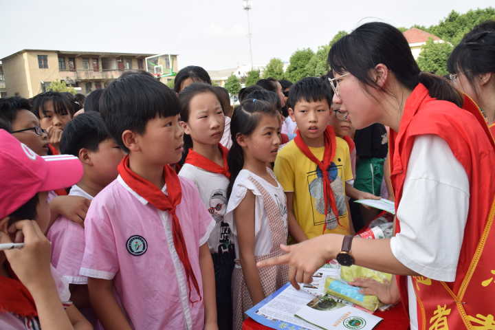 (师生在田集中心小学开展环保宣讲 摄影:潘莹)