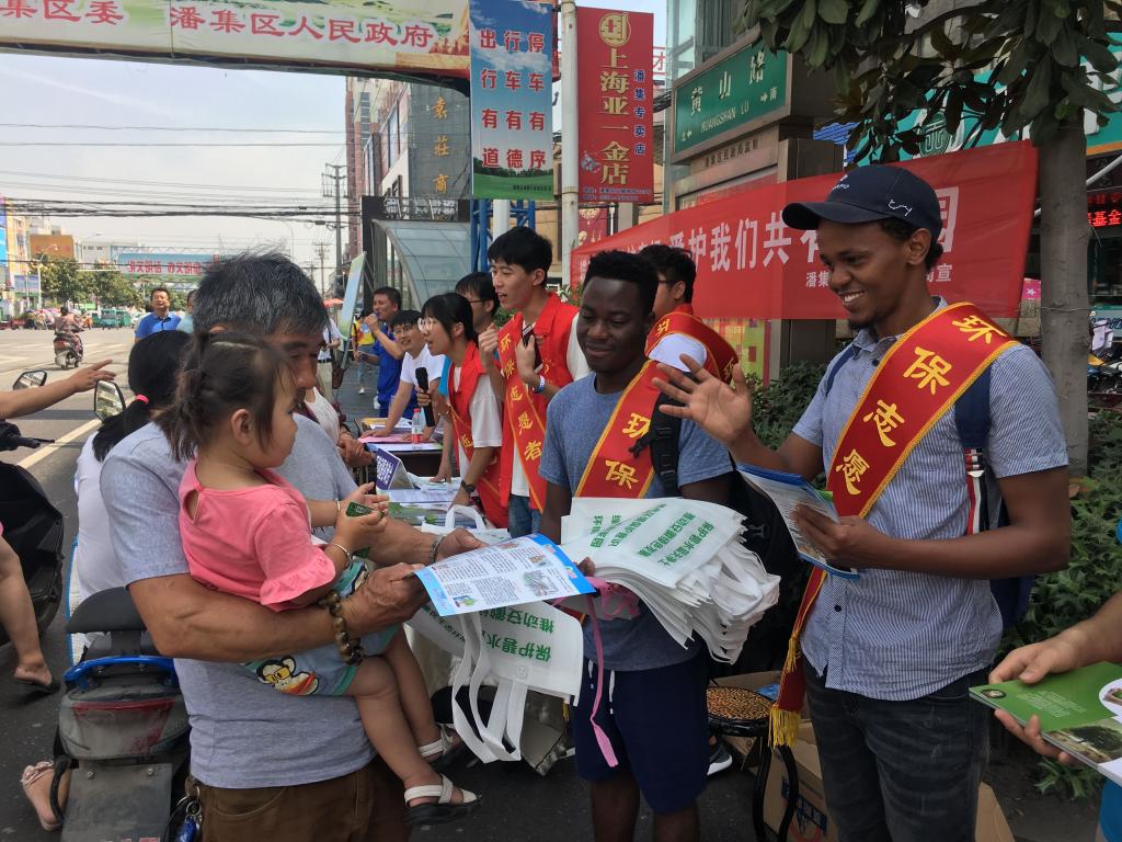 当天,汤姆影院 联合淮南市潘集区人民政府开展了以“蓝天保卫战,我是行动者”为主题的环保公益宣传活动,汤姆影院 环境教工党支部、研究生党支部、学生会、留学生共30余名师生参加了本次活动。