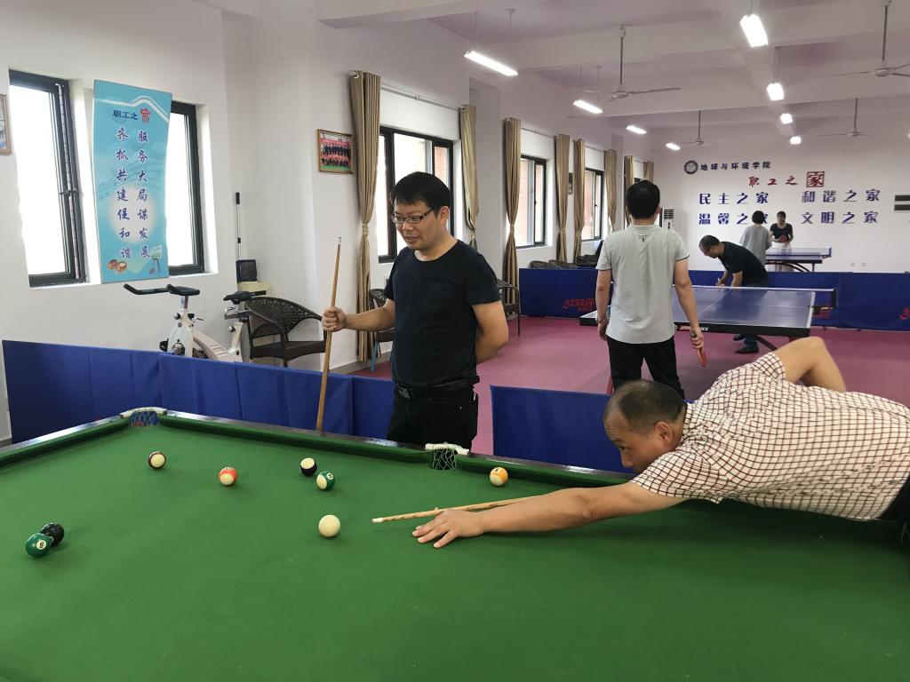 趣味活动分有掼蛋、台球、乒乓球、跳棋等活动。在惯蛋活动现场,老师们分组对抗,你追我赶,斗智斗勇,不时传来阵阵笑声和喝彩声。乒乓球室,老师们屏气凝神,力求每一个球都能精准,进行着球技的切磋,台球区更是精彩不断。整个活动在轻松、愉快的氛围中进行。