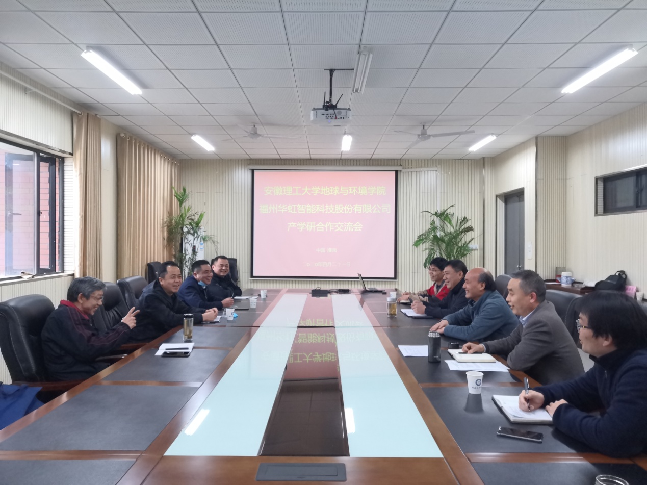 4月21日,福州华虹智能科技股份有限公司董事长陈春江、总经理李培根一行来汤姆影院 参加产学研合作交流会,会议由副院长吴荣新主持。