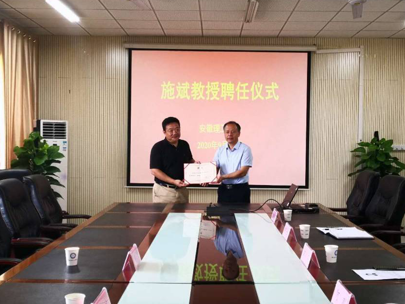 9月16日上午,学校在静远楼B414会议室举行聘任仪式,聘请南京大学施斌教授担任我校特聘教授。校党委书记郭永存出席会议并为施斌教授颁发聘书。
