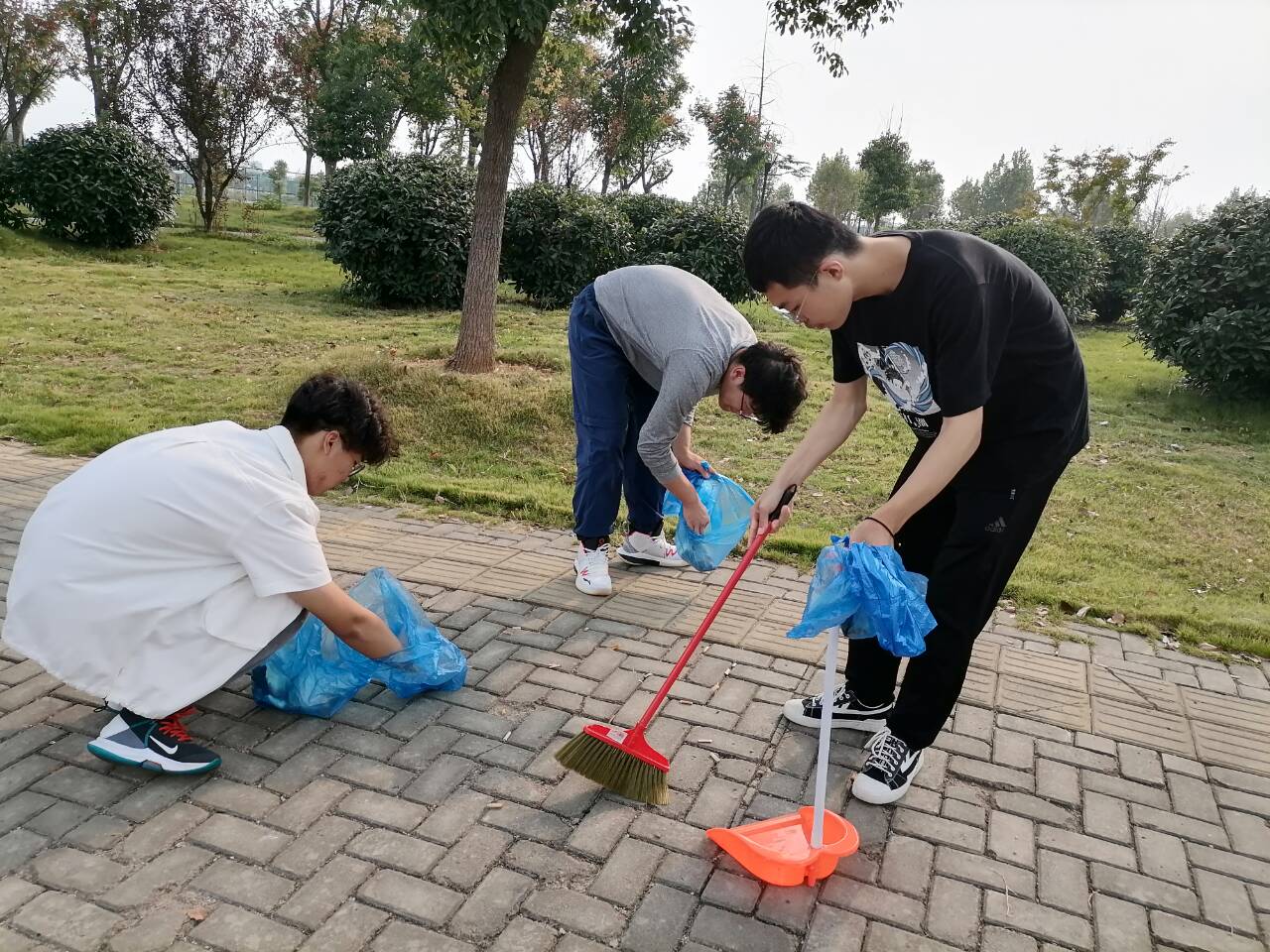 师生分四组实行包干负责制。重点清除包干区内杂草和白色垃圾;楼宇内重点是各公共区间的卫生,清理消防通道,确保安全畅通;各工作室、实验室负责人打扫所负责的房间。
