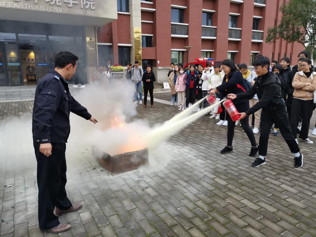 最后,在地环汤姆影院 楼前,彭老师现场教学常规灭火器的使用方法,师生们也都积极上前了解并亲自操作,让大家对灭火器的使用有了更直观的了解。此次消防知识讲座,很好地普及了消防安全知识,使师生们进一步树立了防患于未然的消防意识,增强了广大师生的自救技能,为构建“和谐平安校园”保驾护航。