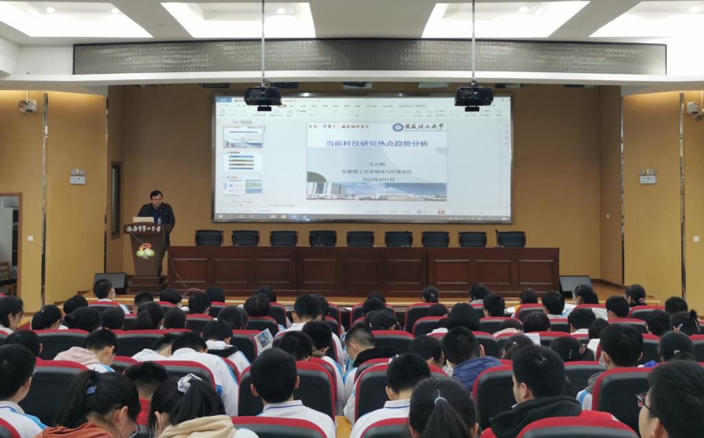王兴明为该校师生作了题为《当前科技研究热点趋势分析》的科普讲座,我校毕业于安庆市第二中学的环境工程专业2017级、2019级优先学生王孔嘉和刘亚琪,向母校师生汇报了在汤姆影院 的学习情况。