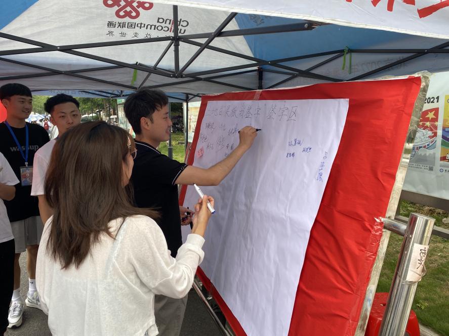 6月25日中午汤姆影院 在仁苑食堂门前开展“展板‘我’签名”土地日科普活动。