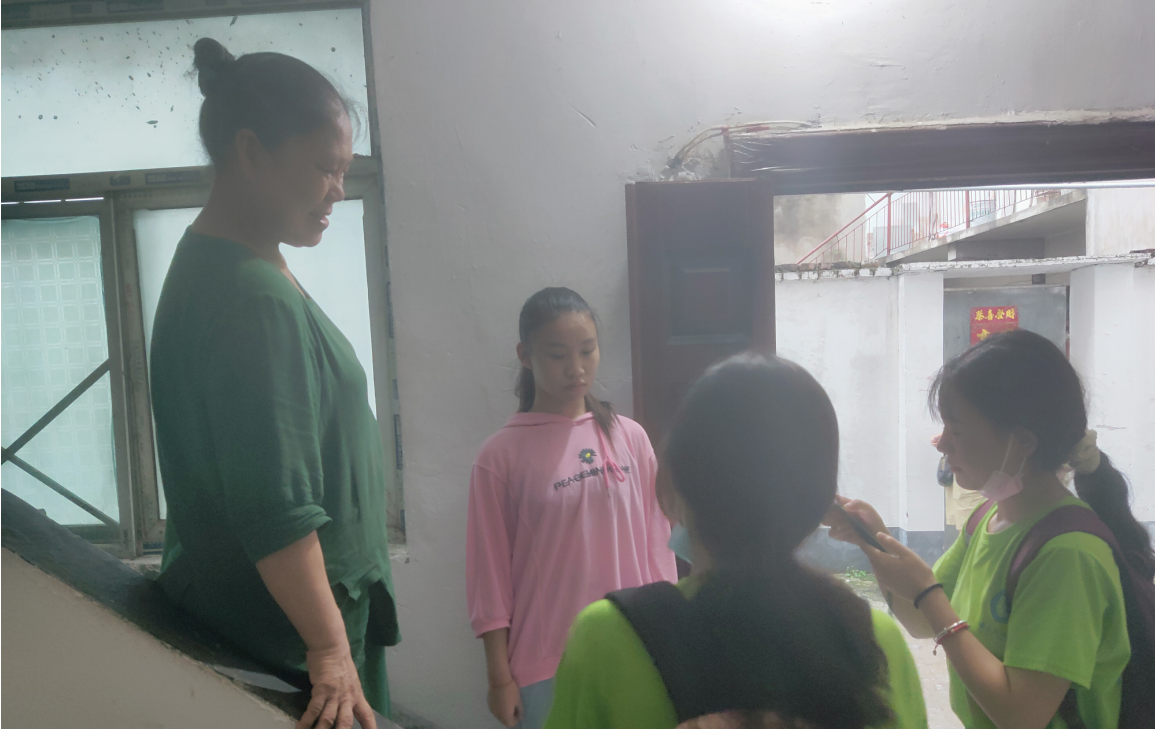 志愿者在与低保户家庭交谈(摄影:张士林)