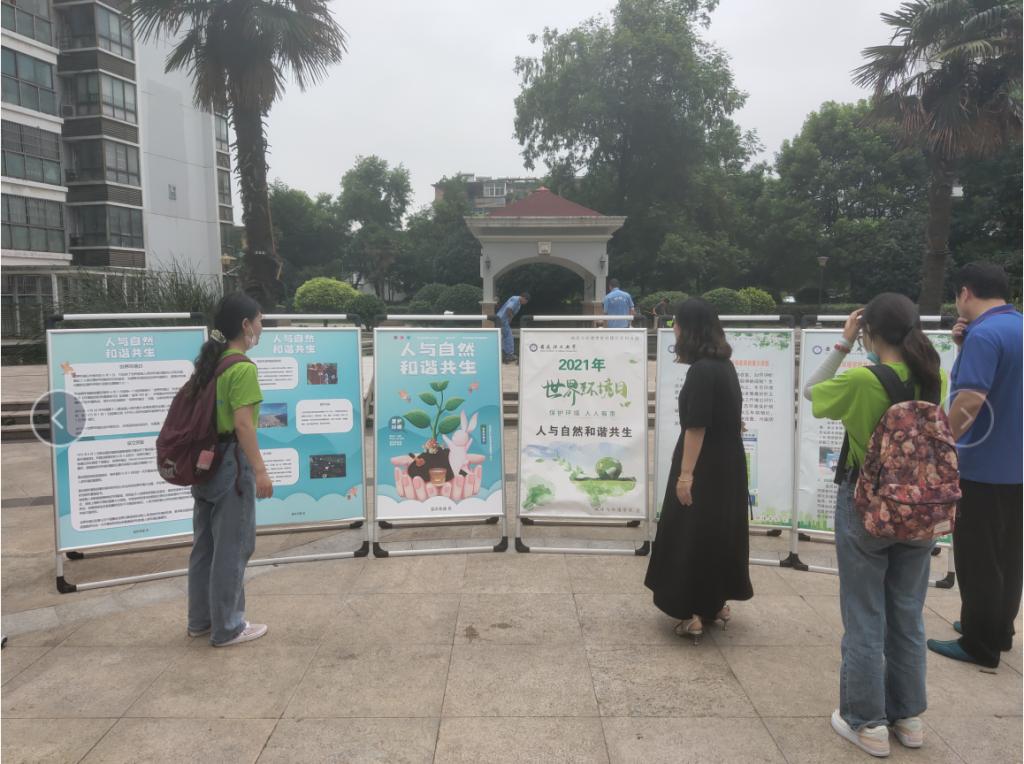 实践环节中志愿者在湖滨公园城小区广场开展“人与自然和谐共生,保持生物多样性”主题环保宣传展,环保志愿者们通过一个个鲜活的案例,呼吁居民保护环境要从身边的小事做起,争做新时代环境保护的宣传和践行者,履行环保责任,共建美好家园。在宣传过程中,环保志愿者还身体力行,主动清扫广场周边垃圾,以实际行动践行环保理念。