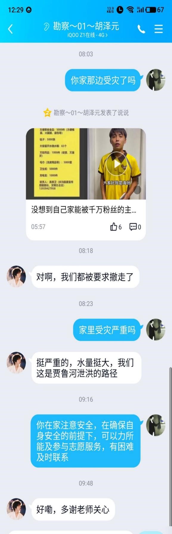 经过联系,个别学生家庭位于泄洪路径,受到房屋部分塌陷、农作物被淹等不同程度的影响,其他相关学生反映家庭所在地雨势转小,整体情况良好,家庭生活处于或逐渐恢复常态,对辅导员老师的关心关注表示感谢。
