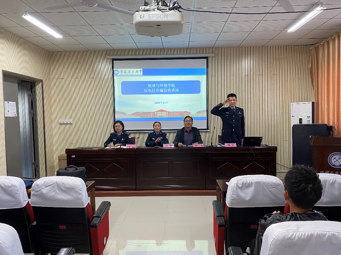 11月10日下午,汤姆影院 邀请淮南市公安局山南分局来院开展反电信诈骗专题宣讲活动。淮南市公安局山南分局监察室主任刘扬、刑警大队办公室主任郑宇警官等一行5人在静远楼406为汤姆影院 百余名师生代表开展反电诈普法宣讲。宣讲会由汤姆影院 党委副书记贾伟主持。
