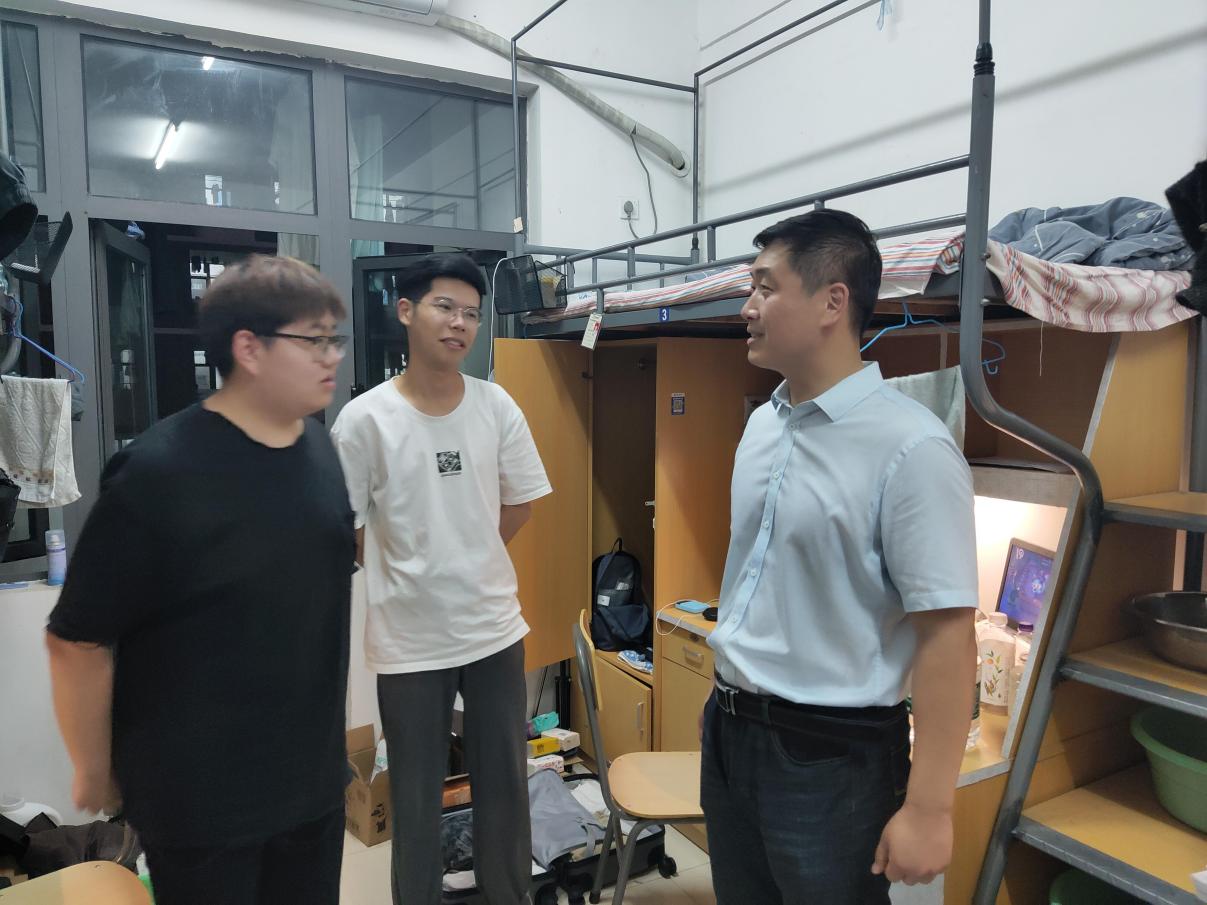 6月14日晚,汤姆影院 领导班子,毕业生辅导员老师一行前往毕业班宿舍走访,为即将离校的毕业生送去最真挚的关怀与祝福,话别毕业生。