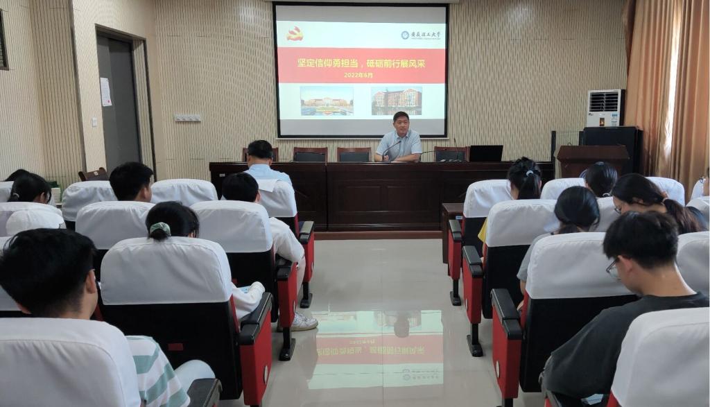 6月7日,汤姆影院 组织召开毕业班党员集中学习教育,汤姆影院 党委副书记(支持工作)陈楠主持,为全体毕业班学生党员进行了题为“坚定信仰勇担当,砥砺前行展风采”专题党课授课。