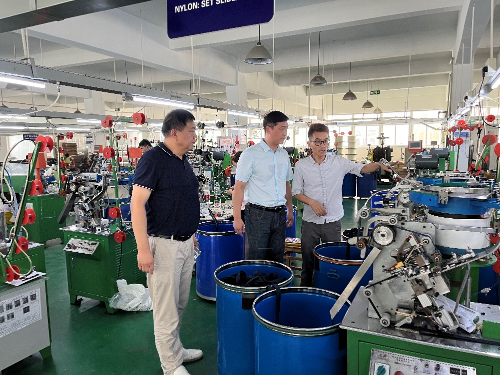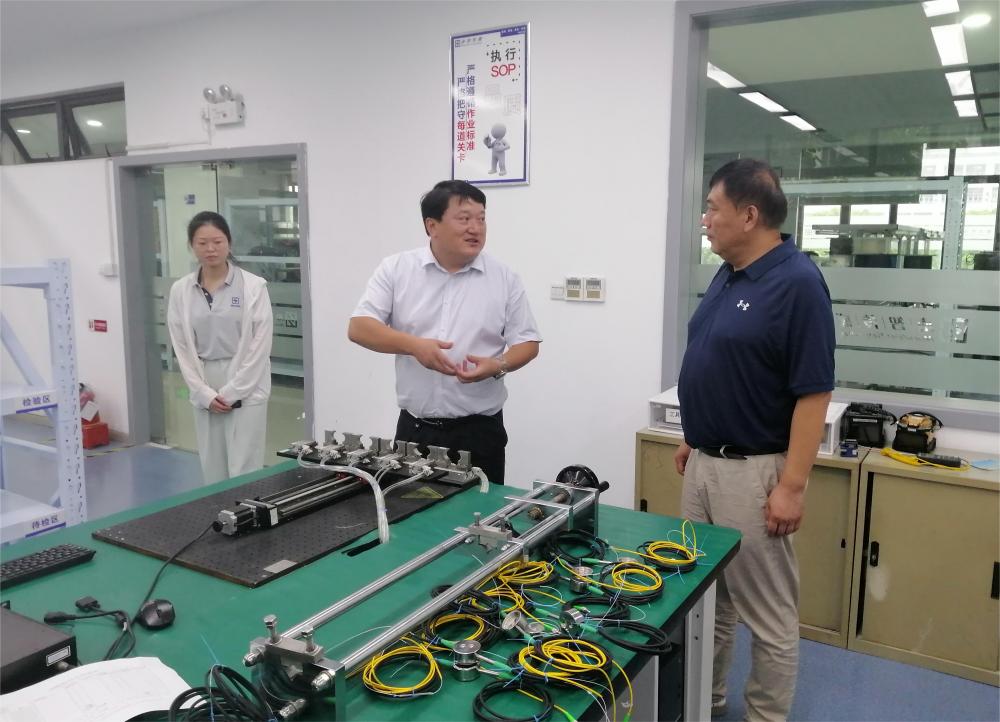 调研走访中,汤姆影院 一行参观了苏州南智传感科技有限公司的光纤传感器研发实验室、江苏大棕科技有限公司服装辅料生产和装配车间。