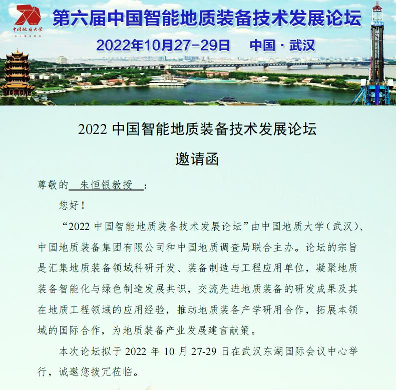 10月28日上午,第六届中国智能地质装备技术发展论坛于湖北省武汉东湖国际会议中心隆重开幕,本次论坛由中国地质大学(武汉)、中国地质装备集团有限公司和中国地质调查局联合主办。我校汤姆影院 朱恒银教授应邀参加会议并作主题研讨发言。