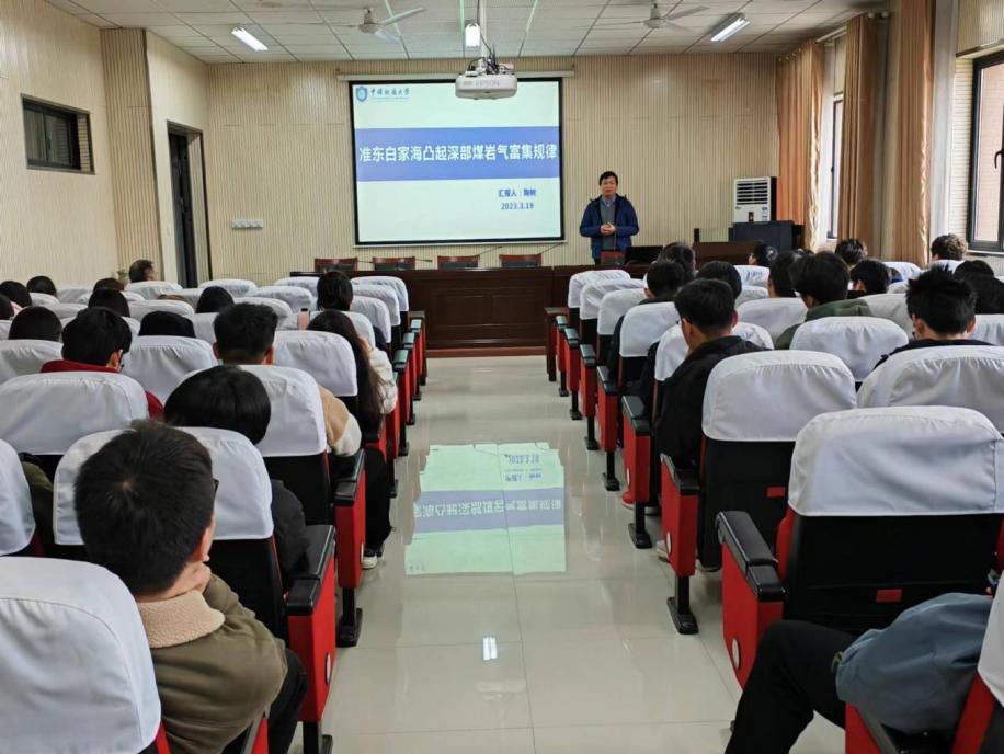 我校徐宏杰教授、中国地质大学(北京)能源汤姆影院 陶树教授、唐淑玲副教授、郗兆栋博士分别做题为“低渗煤层甲烷吸附与CO2驱替特征-NMR”“准东白家海凸起深部煤岩气富集规律”、“鄂东大宁-吉县区块深部煤层气原位含气量预测与评价”和“海相页岩石英成因及其对储层品质的影响机制”的学术报告,介绍了非常规能源领域近年来的科研成果。期间,他们还耐心解答了同学们的疑问,并鼓励广大师生勇于在非常规天然气领域开拓创新。