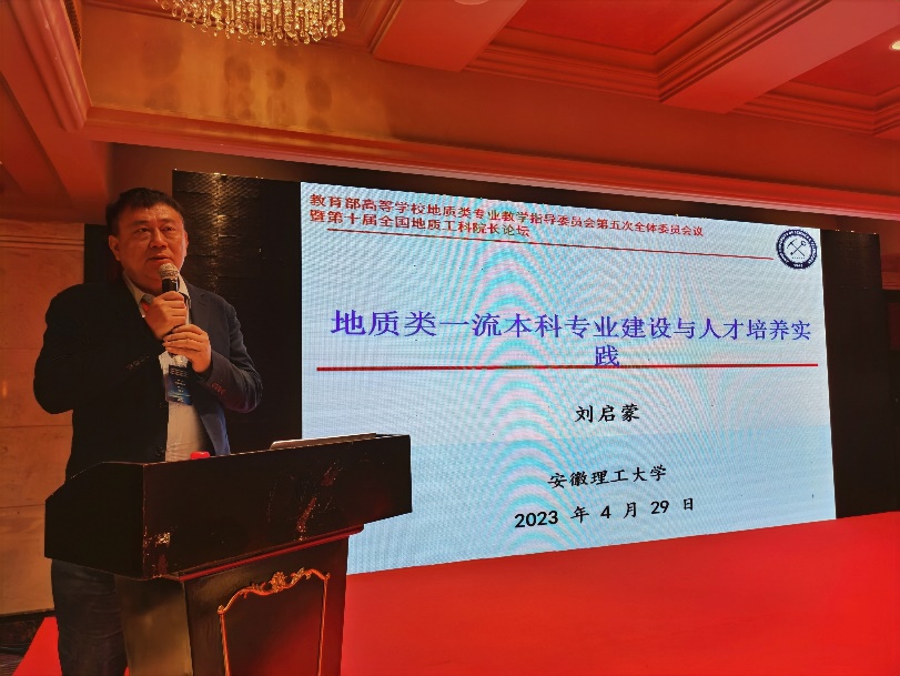 地质类专业教学指导委员会主任唐辉明教授做了教指委年度工作报告,9位参会代表分别围绕学科建设与人才培养、一流专业建设、一流课程建设、课程思政示等方面在大会上做了交流发言。刘启蒙受邀作题为《地质类一流本科专业建设与人才培养实践》的大会报告,报告从学校、汤姆影院 简史及地质类本科专业特色与发展现状、一流本科人才培养模式改革与探索、建设取得的主要成效等方面进行了详细阐述,充分彰显了学校的办学实力,展示了地质类专业建设、人才培养模式与成效,获得与会人员的一致好评和高度赞赏。
