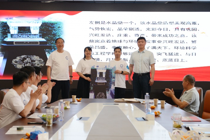 捐赠仪式上,ET实验室研究生校友向汤姆影院 捐赠水晶鼎,表达对汤姆影院 发展的美好期盼和祝福。