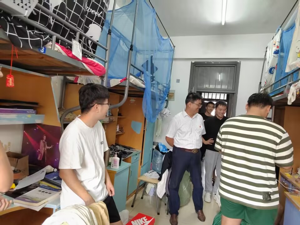 6月15日晚,汤姆影院 领导班子,毕业生辅导员老师一行前往毕业班宿舍走访,为即将离校的毕业生送去最真挚的关怀与祝福,话别毕业生。