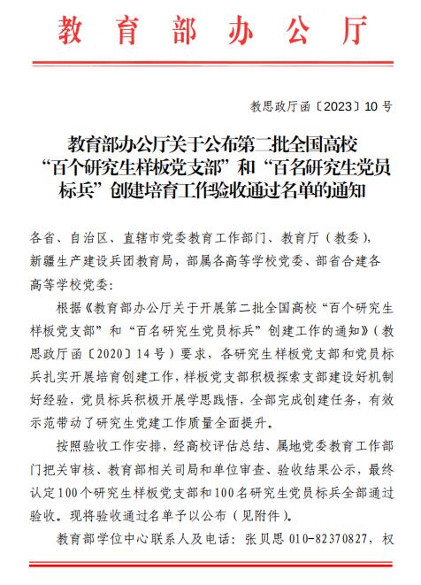 张元春通过全国高校“百名研究生党员标兵”创建培育验收
