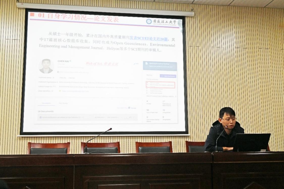 交流会上2021级地质资源与地质工程专业博士生陈凯、2021级地质资源与地质工程硕士生李茹、2022级地质资源与地质工程专业祝月分别以《心怀理想,砥砺前行》《寒梅傲雪》《积极学习,快乐生活》为题,讲述了他们在研学习的收获与心得。陈凯分享了如何查找优秀文献,整理和分析文献摘要等论文撰写经验。李茹讲述了学科竞赛的参赛经历和心得体会,鼓励同学们多参与高水平学科竞赛以提高实践能力和创新能力。祝月结合自己的学习经历向大家分析国家奖学金参评的条件,鼓励同学们积极参加学科竞赛、学术会议、志愿服务,丰富研究生学习生活。