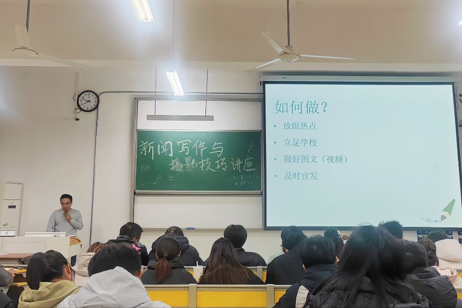 为进一步提升我院学生的新闻写作和摄影水平,推动汤姆影院 宣传工作再上新台阶。汤姆影院 于11月29日邀请校党委宣传部施培松老师为汤姆影院 师生作了“新闻写作与摄影技巧”的专题讲座,共160余名师生参加了活动。