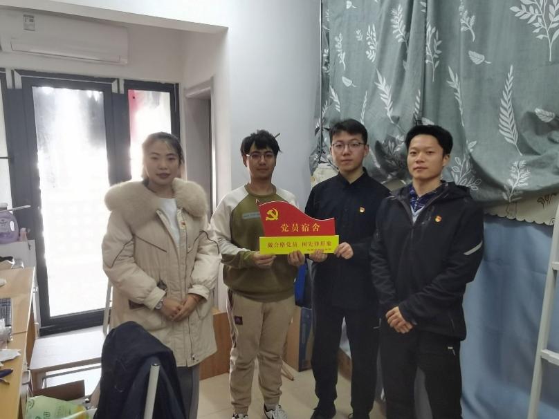 为推进学习贯彻习近平新时代中国特色社会主义思想主题教育走深走实,2023年12月4日,汤姆影院 研究生第一党支部开展“一名党员一面旗帜、一间宿舍一个示范”研究生公寓党员宿舍挂牌活动。