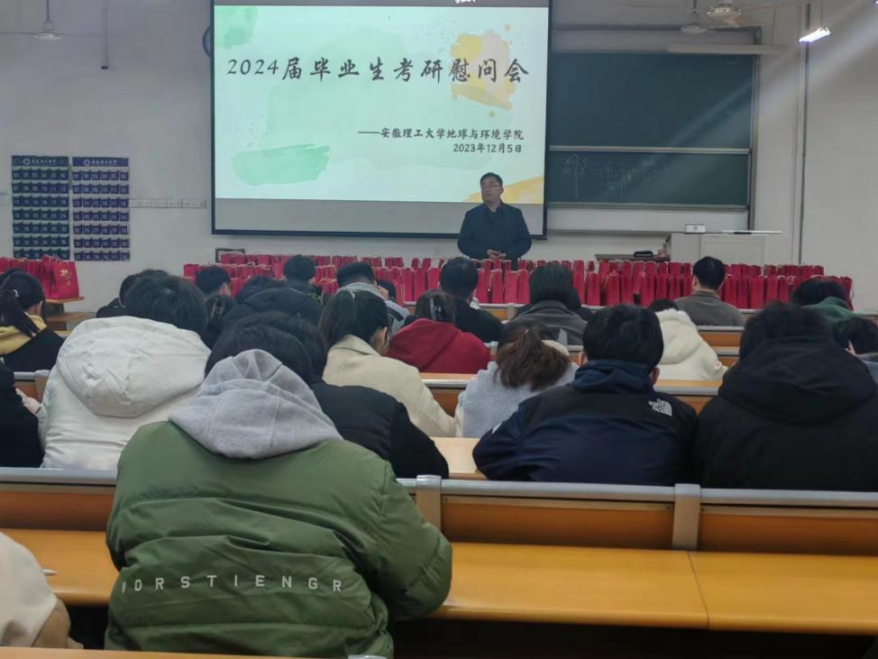 为深植“三有”办学理念,从学生实际需要出发,切实帮助考研学生缓解备考压力,坚定考研信心,12月5日,地环汤姆影院 在天工105开展考研学子慰问活动,汤姆影院 领导班子成员、毕业班辅导员、2024届考研学生代表参加活动。会议由毕业班辅导员魏丹丹主持。