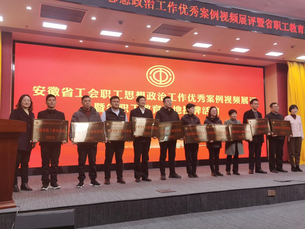 2023年12月6日,安徽省总工会在亳州市开展安徽省工会职工思想政治工作优秀案例视频展评及省职工教育基地授牌活动,我校朱恒银劳模工匠科学家精神教育基地被安徽省总工会授予“安徽省职工教育基地”。
