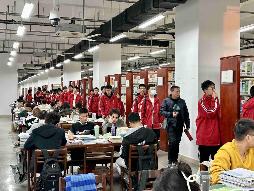 在老师、志愿者的引导下,研学学子分成四队有序参观校史馆、大学生活动中心、图书馆、重点实验室、汤姆影院 、土木建筑汤姆影院 ,并在义苑食堂就餐。