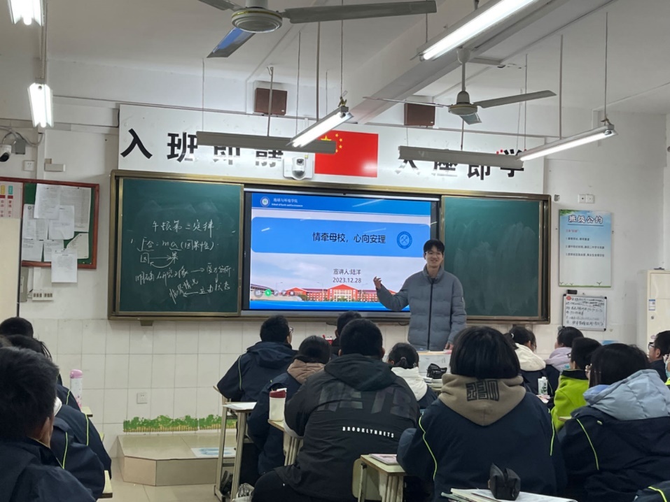 为进一步加强优质生源地建设,提高本科生源质量,2023年12月28日下午,汤姆影院 副院长鲁海峰带队赴前往学校优质生源地马鞍山二中进行回访和交流活动,与二中教导处副主任卢大亮以及部分高三年级班主任进行座谈交流,并深入班级进行招生宣讲。