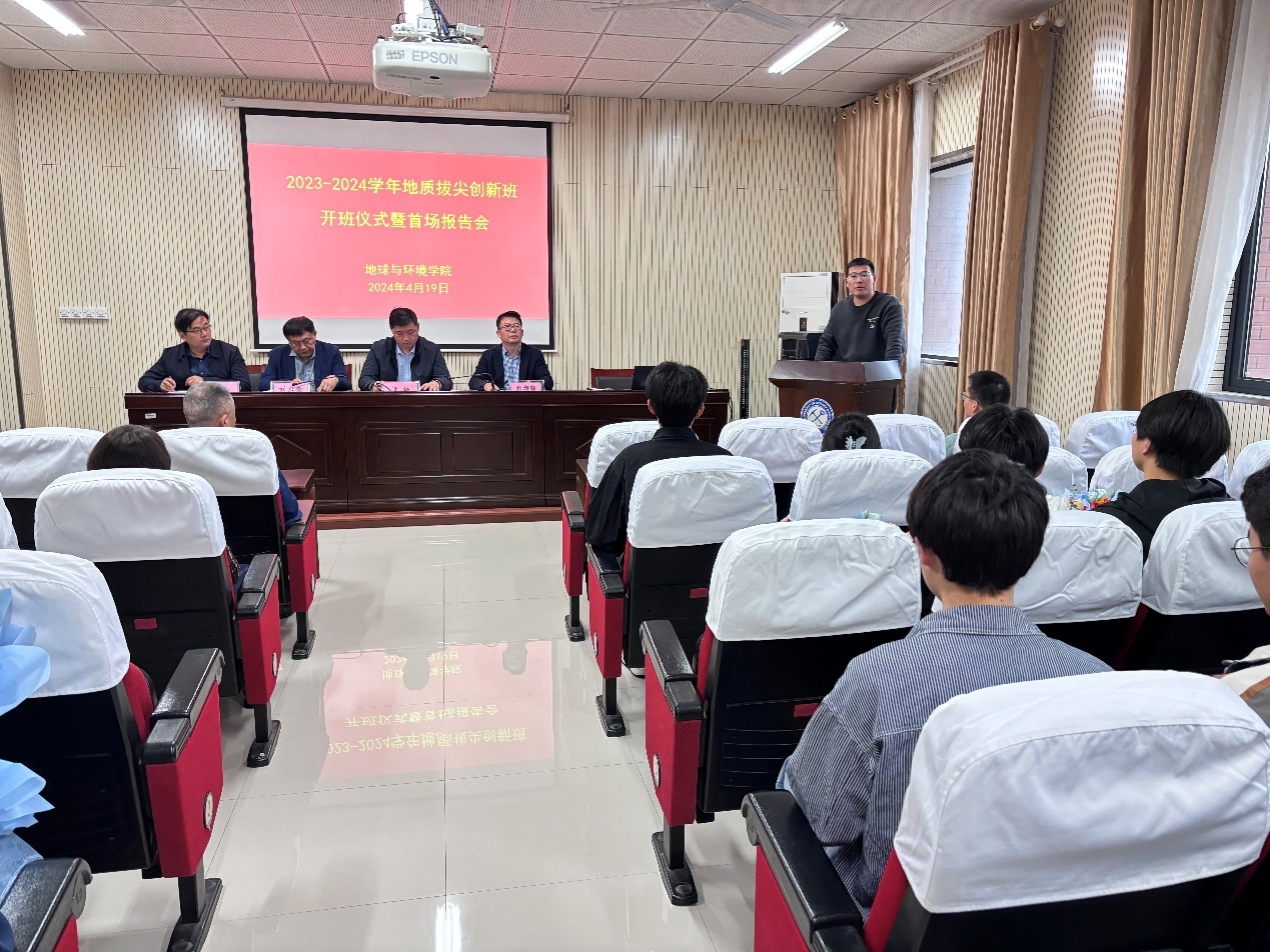 4月19日下午,汤姆影院 在静远楼B406会议室隆重举行首届地质拔尖创新班开班仪式暨首场报告会。汤姆影院 领导班子成员,13名指导教师和25名创新拔尖班学生参加会议,副院长鲁海峰主持会议。