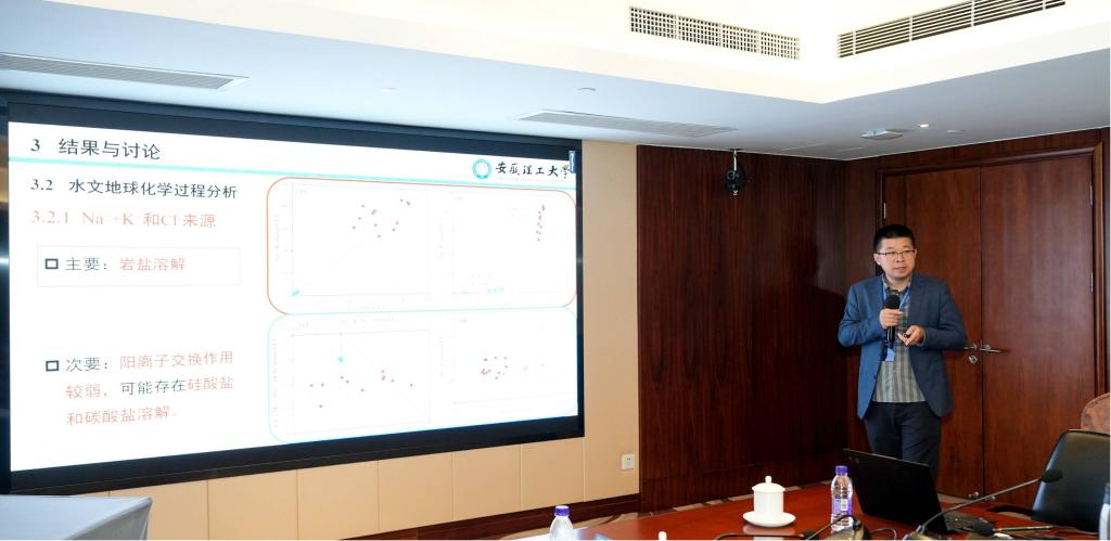许光泉教授和张海涛副教授分别作“淮南煤田地温变化规律及控制因素研究”、“华北煤田南缘下古生界岩溶水文地球化学特征及其热指示意义”报告,引起了与会代表的广泛关注和热烈讨论。