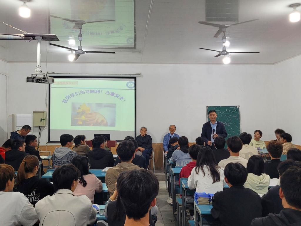 在教学区,汤姆影院 邀请钱守荣、宋珍炎两位退休教授给实习学生讲授实习意义及区域地层概况、区域大地构造、岩石矿物判断方法,鼓励学生珍惜一个月的实习时间,以“下马观花”的态度深悟细学,为以后的科学探索奠定基础。同学们就野外实习、报告撰写等问题向老教授提问。