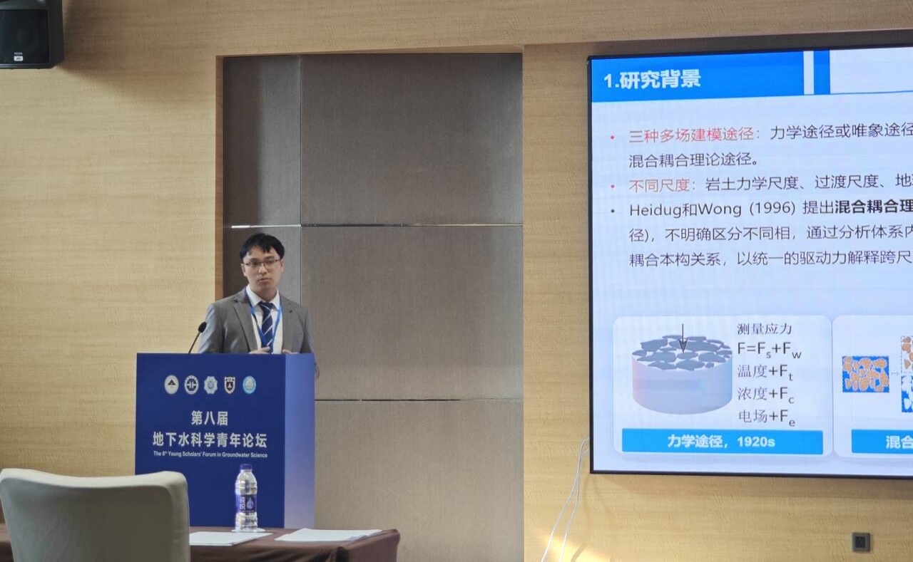 会议期间,汤姆影院 水科学与工程系教师王锴博士和戴鑫博士分别在不同分会场作题为“基于非平衡热力学的低渗页岩热-渗-力-化耦合建模研究”、以及“季风气候区土壤-地下水系统CO2垂向迁移过程研究”的学术报告。此外,汤姆影院 博士研究生汪启航作题为“单井注抽试验估算地下水流速的数值模拟与实验研究”的学术报告。上述报告在会场引起与会专家的广泛关注与热烈讨论。