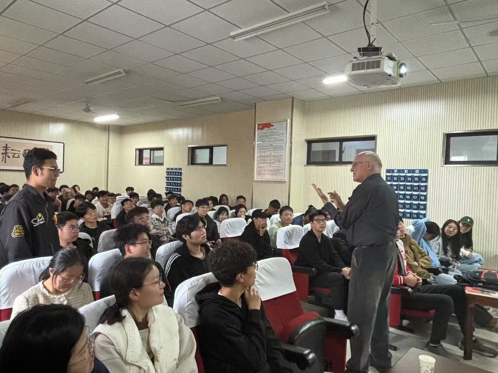 Noel White教授向汤姆影院 师生展示了他在50多个国家从事地质工作的经历,他用自己的人生故事,鼓励学生积极参与国际活动,激励地质学生投身野外工作,在野外中实践专业知识。会后,学生踊跃发言,针对学生关心的国际野外地质交流情况,国外学习方式和如何学习英语等相关问题进行了回答。