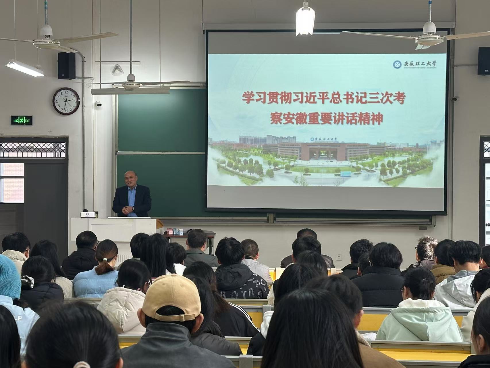 培训第一讲,汤姆影院 组织员盛鹏飞老师以《学习贯彻习近平总书记三次考察安徽重要讲话精神》为题,以“重视与期望”“回顾与关注”“贯彻与落实”三个部分,从安徽发展的战略定位谈起,围绕学习贯彻习近平总书记三次考察安徽重要讲话和对安徽工作的系列重要指示批示精神为主线,聚焦“生态文明建设”“自主科技创新”“以人民为中心”“红色江山传承”“基层社会治理”五个方面,结合汤姆影院 发展进行系统宣讲。